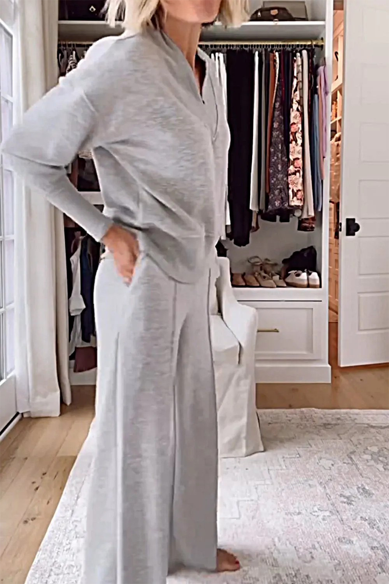 Casual Pocket Patchwork V Neck Long Sleeve Two Pieces(7 Colors)