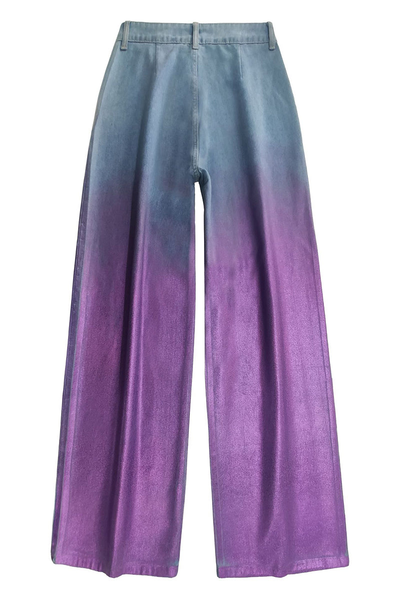 Casual Street Gradient Print Pocket Sequined Contrast High Waist Loose Denim Jeans