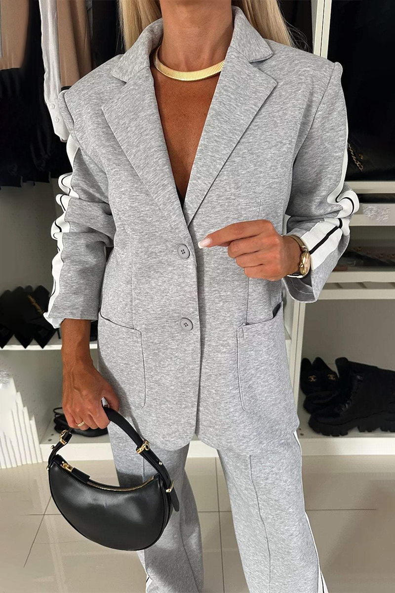 Casual Stripe Buttons Patchwork Contrast Turn-back Collar Long Sleeve Two Pieces(7 Colors)