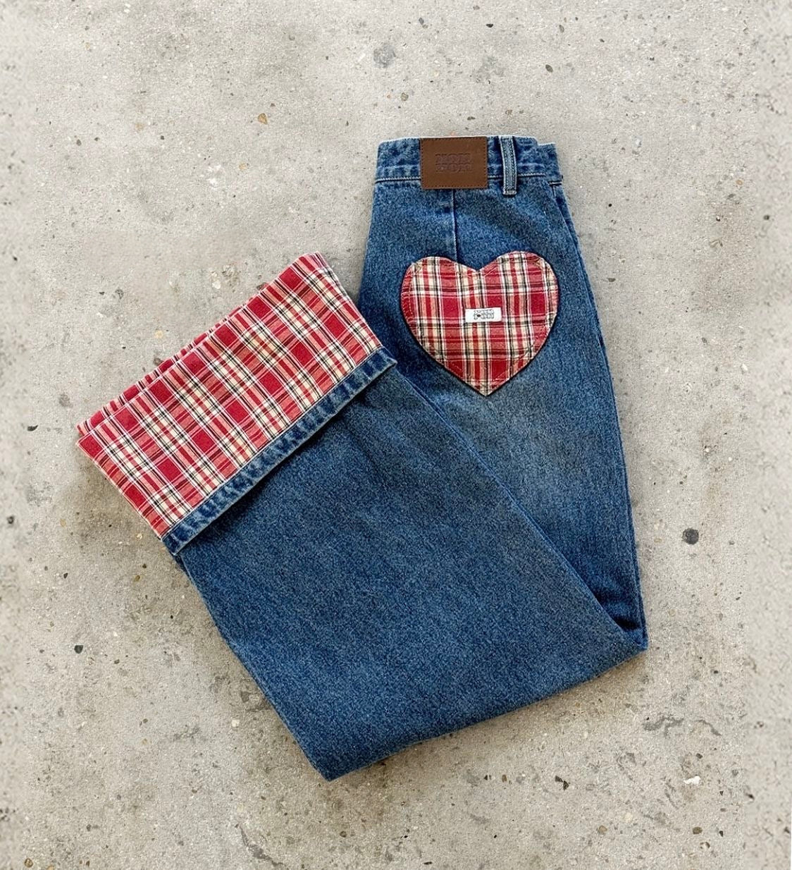 Fall in love with your everyday denim! The Checkered Patch Roll Up Jeans bring a playful, romantic twist to the classic baggy streetwear silhouette. These jeans aren't just about the fit—they’re about the adorable details that make it memorable.