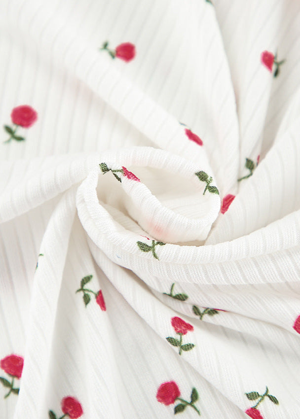 The Cherry Blossom Lounge Set offers a playful yet chic style, perfect for laid-back days and cozy evenings. Crafted from a soft, ribbed fabric adorned with delicate floral prints, this two-piece set features a cropped button-up top with flaRed cuffs and matching relaxed-fit pants. Designed for effortless comfort and charm, it's a versatile choice for lounging at home or casual outings.