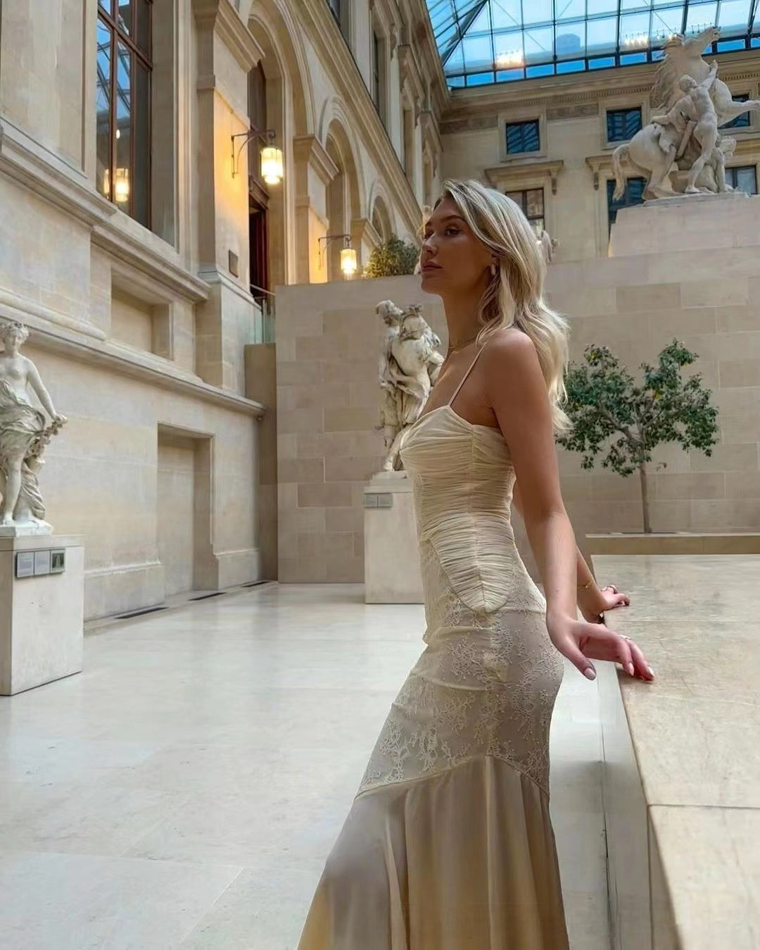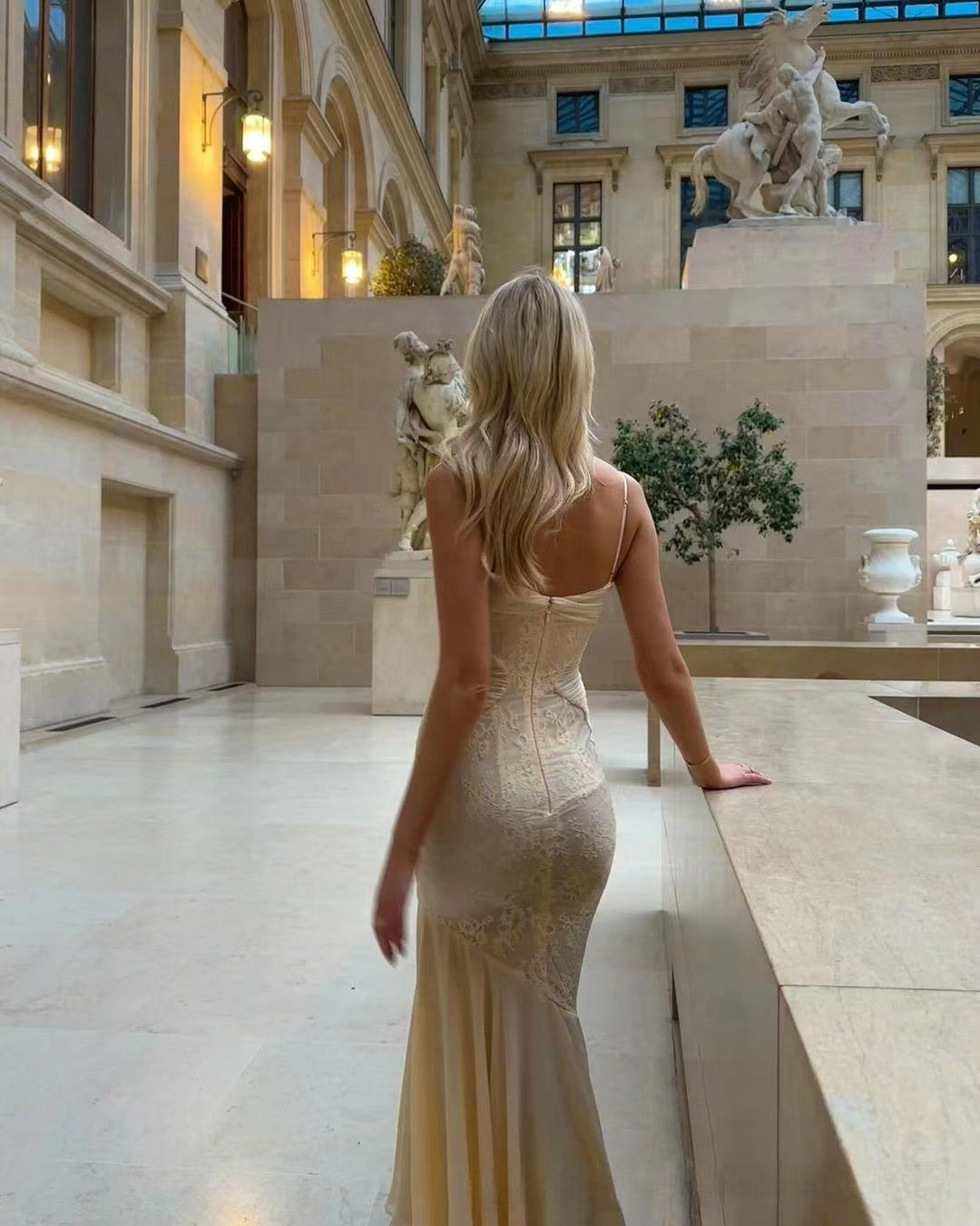 Make a statement in our Chiffon Lace Splice Low-Cut Dress! ___ Perfect for a romantic date or vacation, this sexy slip dress combines elegance with allure. Feel confident and beautiful wherever you go._