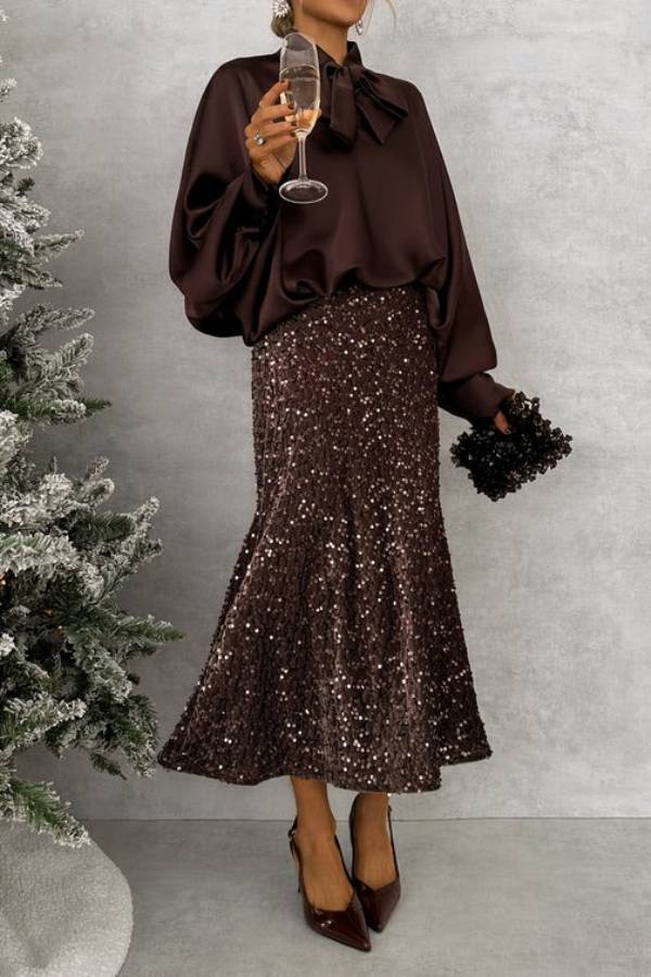CHOCOLATE SEQUIN SKIRT