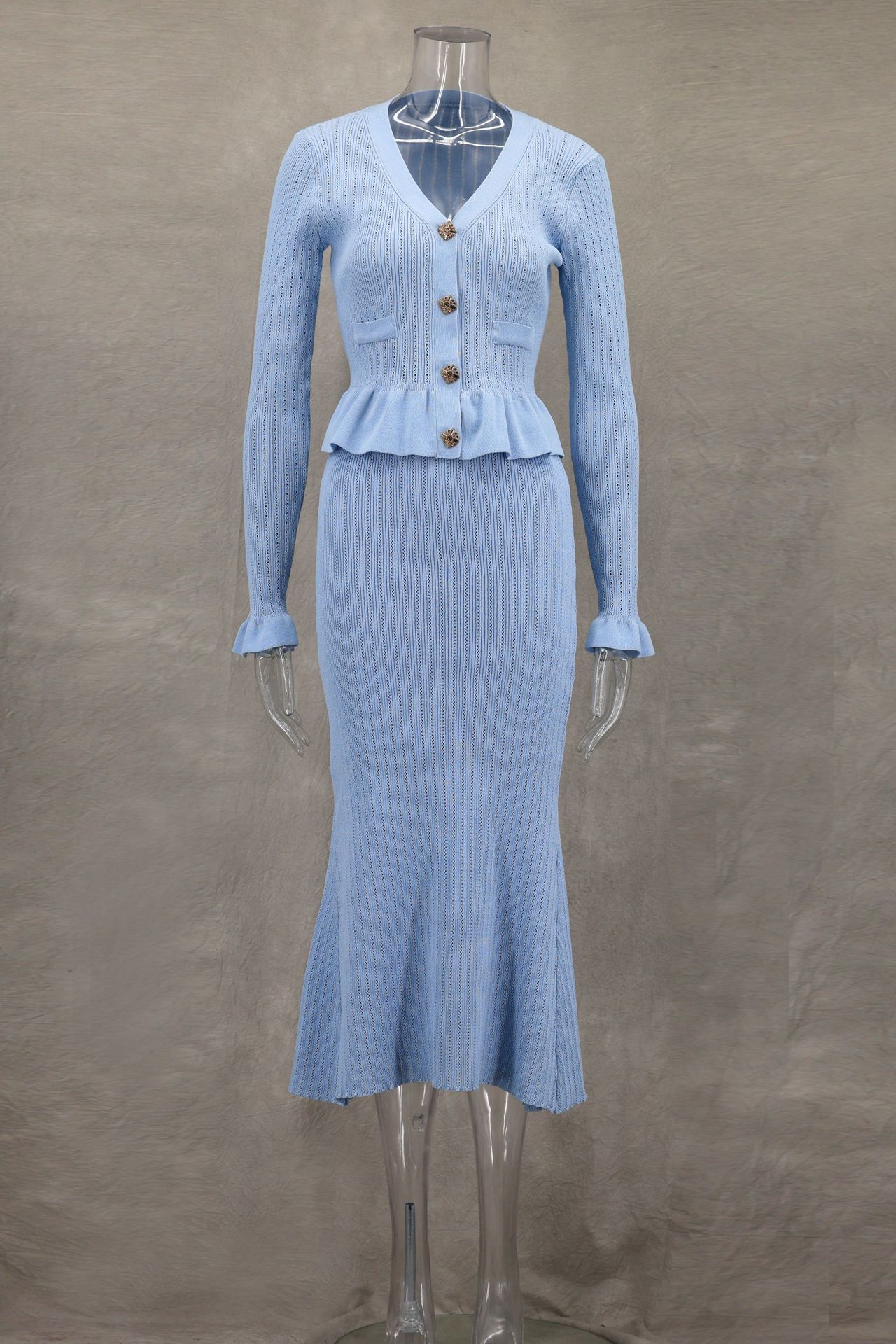 Classic Ruffled V neck Hip Small Fishtail with dress Set
