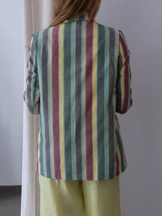 Classic Striped Print Lapel Pocket Blazer
