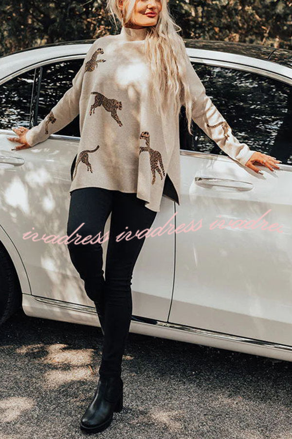 Cozy and Kind Leopard Slit Relaxed Sweatshirt