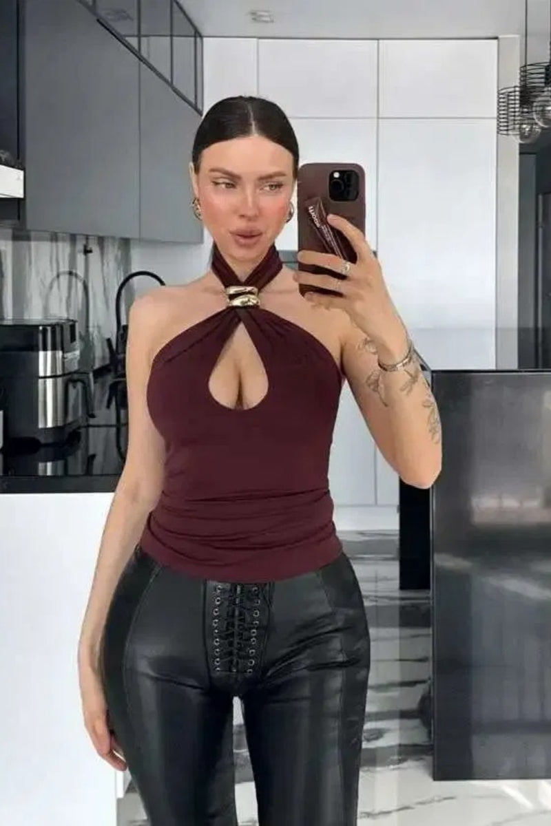 Crepe Halterneck Trim Detail Top