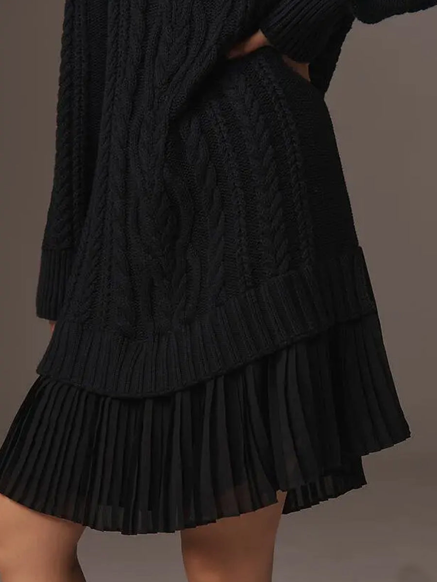 Daily Chiffon Beige Round Neck Long Sleeve Contrast Casual Knitted Mini Dresses