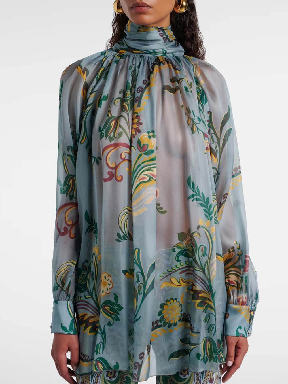 Delicate Floral Print Pleated Tie-Front Chiffon Blouse
