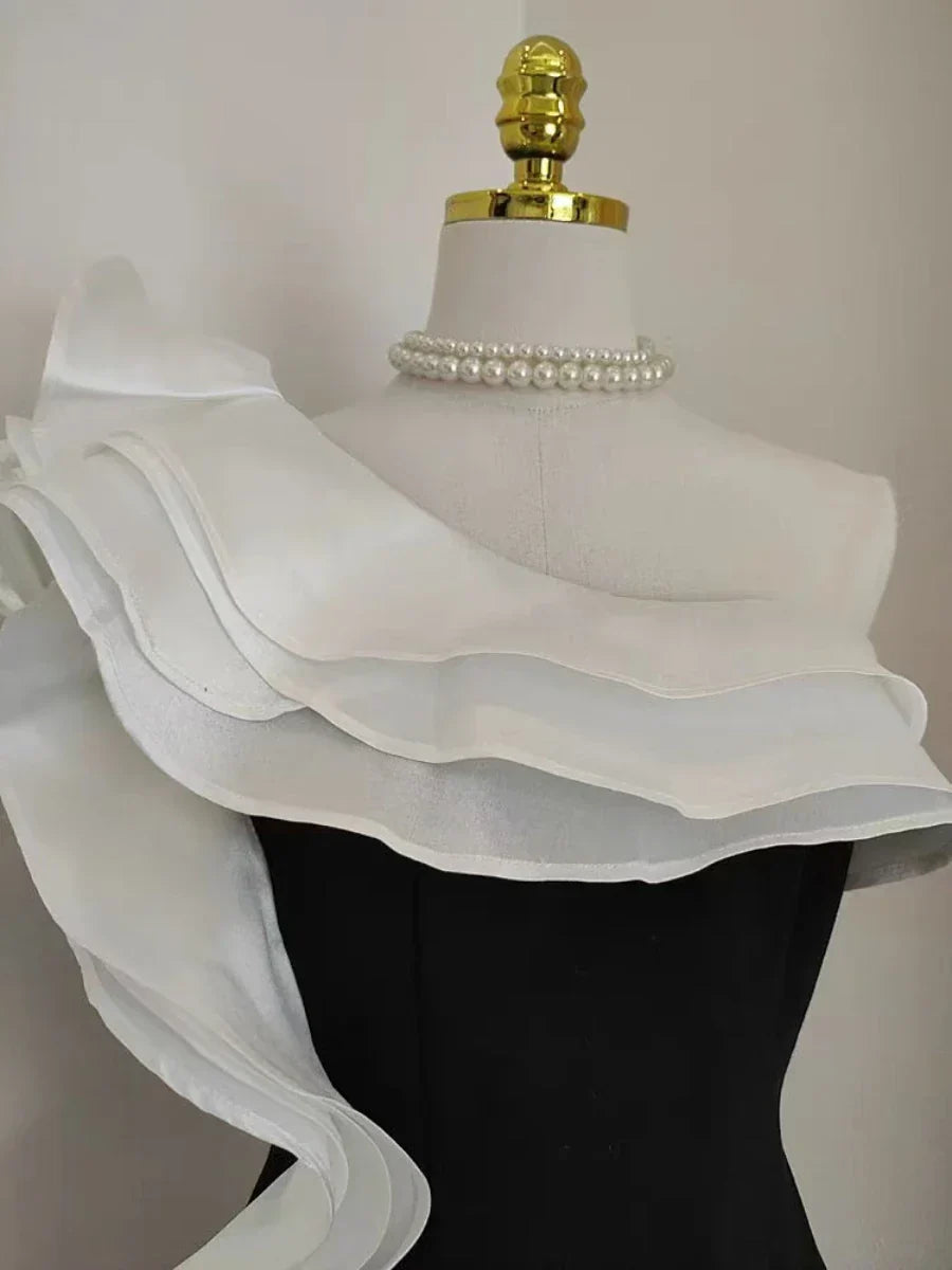 Diagonal Neck Patchwork Ruffles Folds Dress