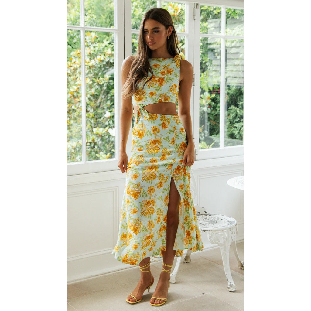 Digital Floral Print Fresh Vestidos Sweet Tie-Neck Sleeveless Estampado Floral Dress