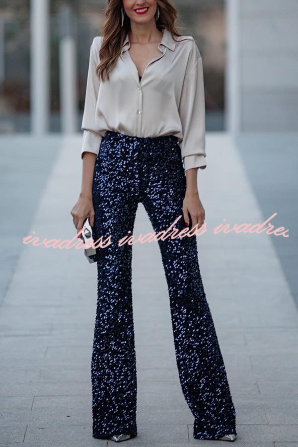 - Bring glitz and glamour to your nightlife with the Diva Sequin Flare Pants!Â