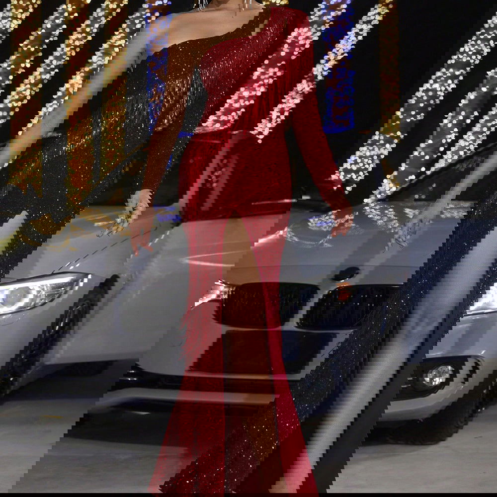 Dress Sequined Tassel Backless Evening Dress