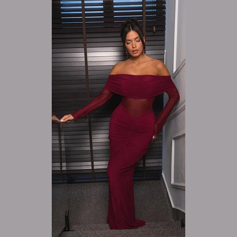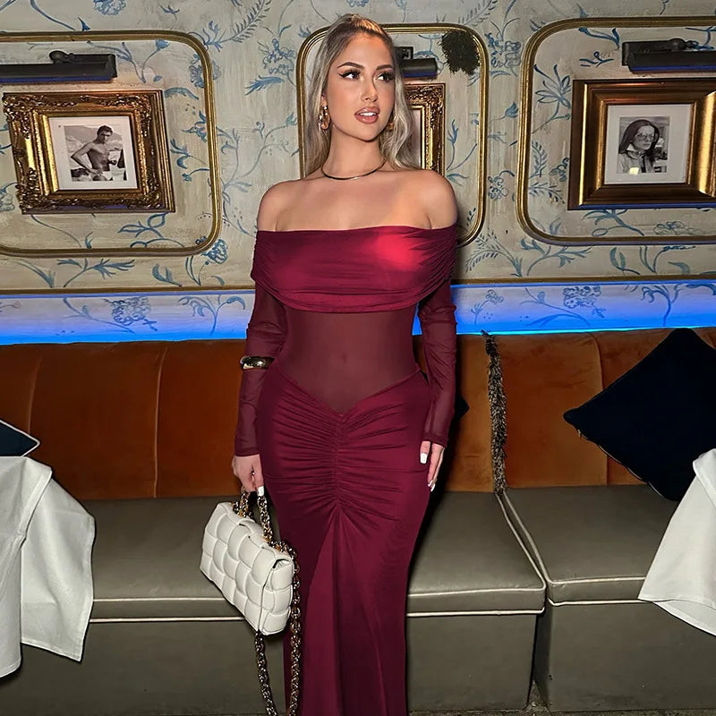 Elegant Backless High Waist Mesh Patchwork Maxi Dress