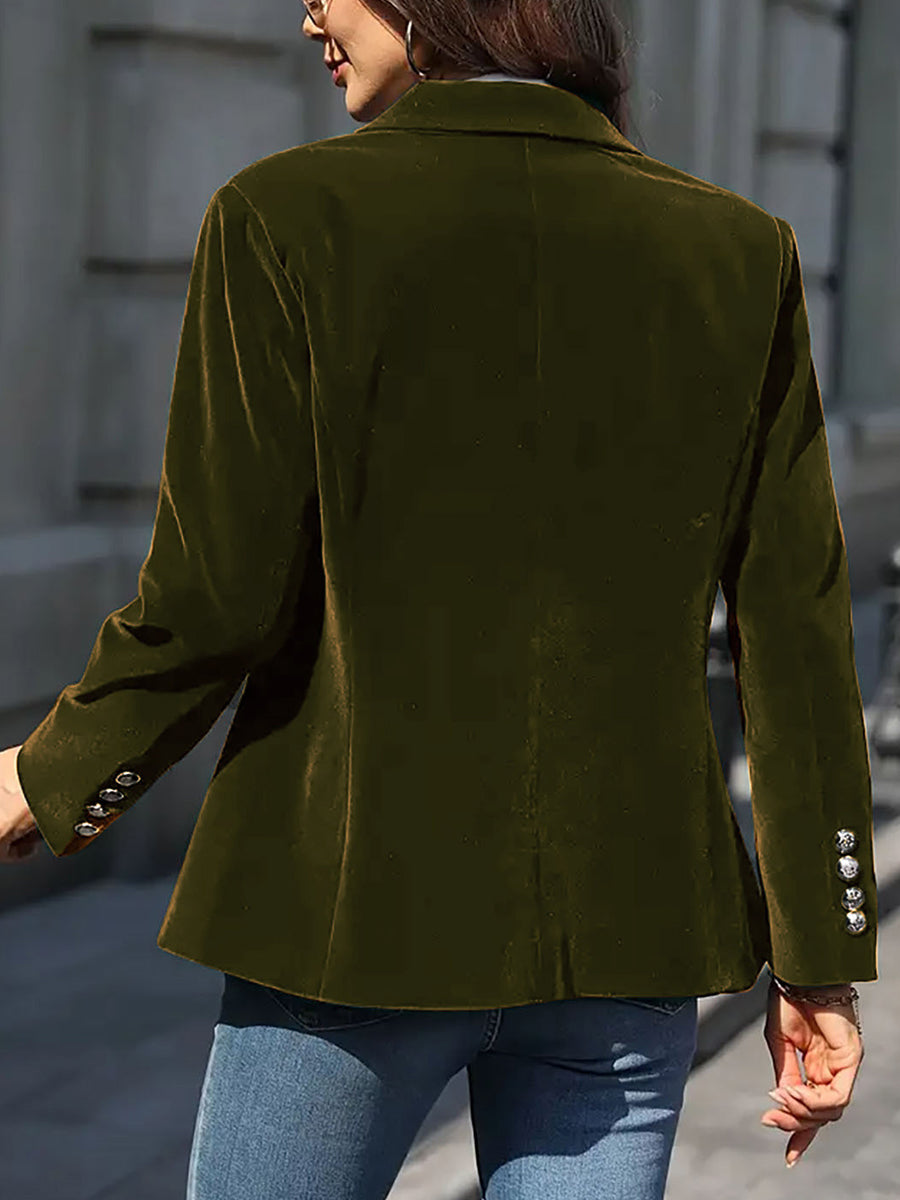 Elegant Red Velvet Lapel Collar One Button Long Sleeve Blazer