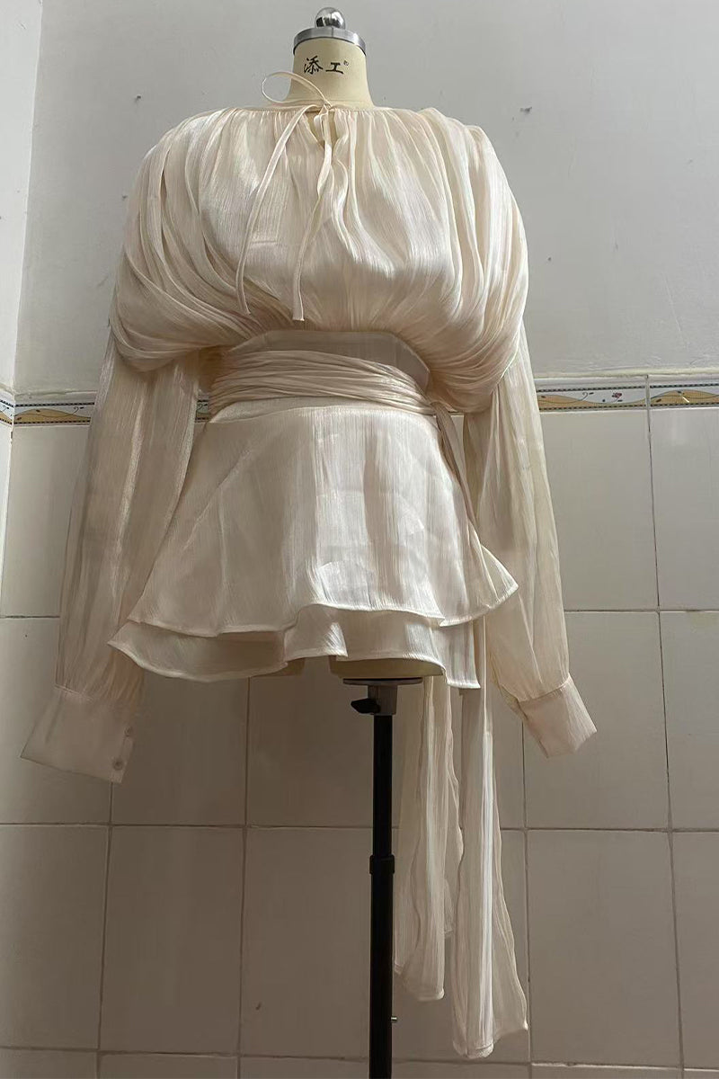 Elegant Lace Up Flounce O Neck Long Sleeve Two Pieces