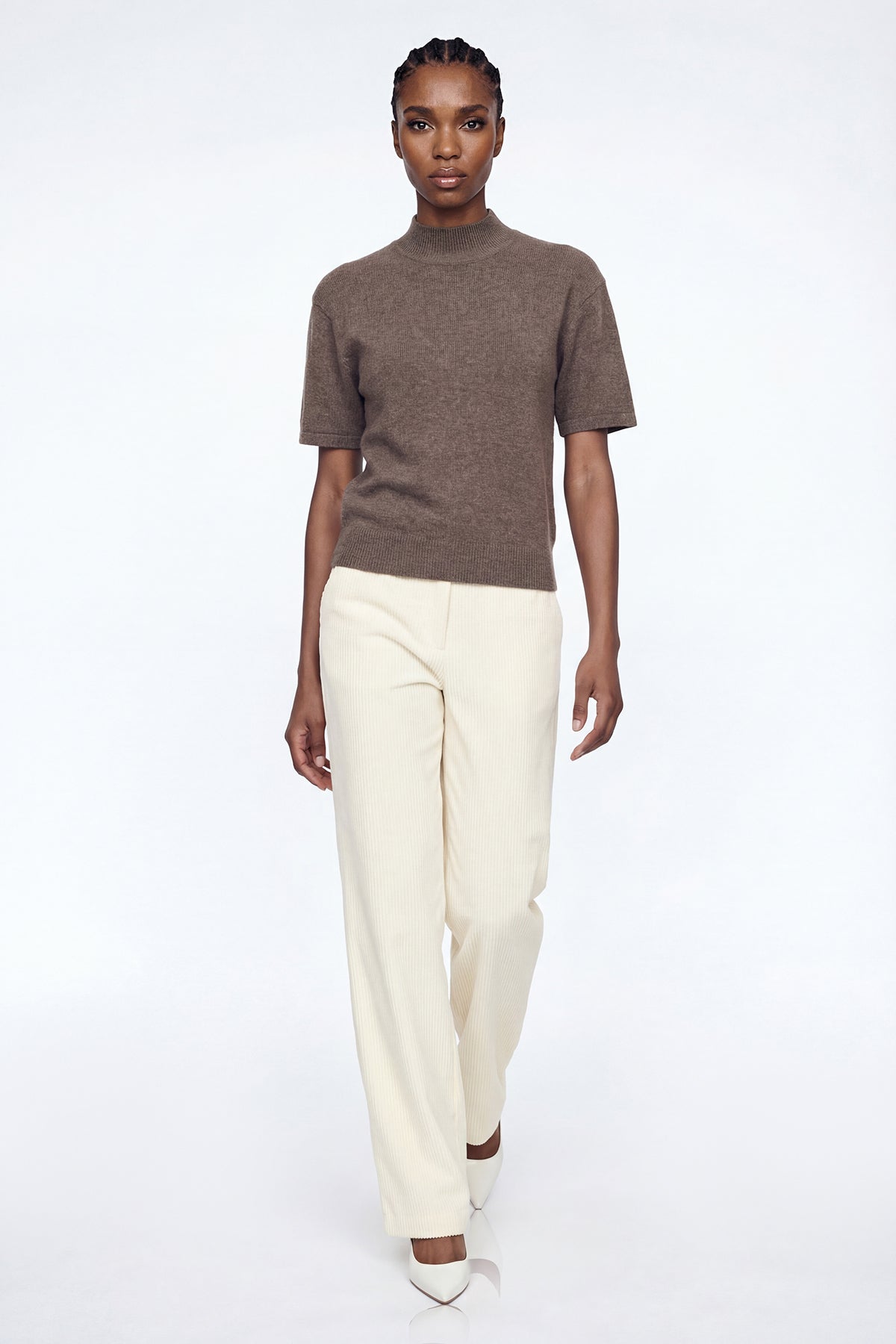 Elisha High Neck Knit T Shirt The Elisha High Neck Knit T Shirt delivers refined versatility through its elevated neckline and premium knit construction. This piece seamlessly transitions from layered basics to standalone statement wear, offering a polished silhouette that flatters various body types. The high neck provides additional coverage and visual interest, while the quality knit fabric ensures durability and maintains its shape through repeated wear. Perfect for building a sophisticated, modern wardrobe that prioritizes both comfort and style.