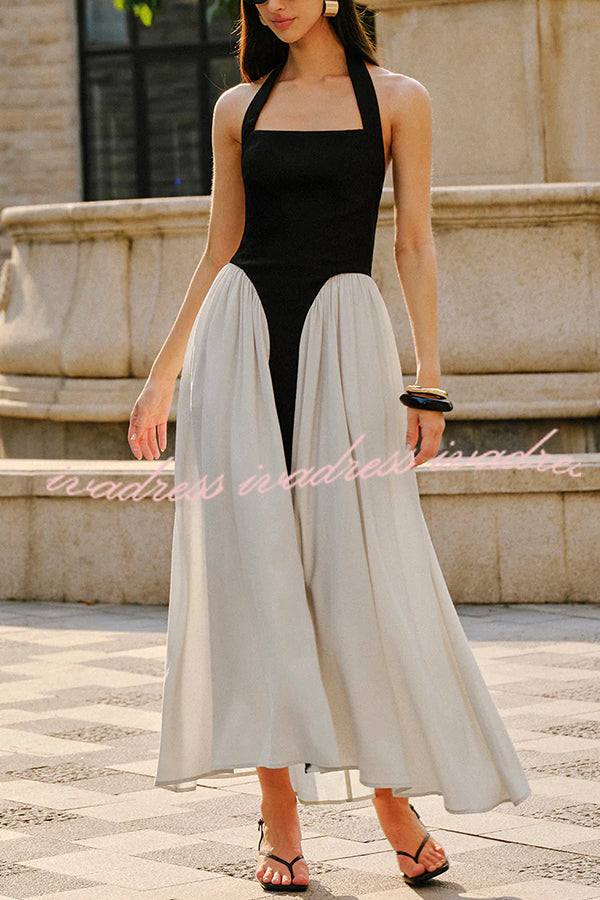 Fashion Contrast Color Stitching Sleeveless Backless Slim Maxi Dress