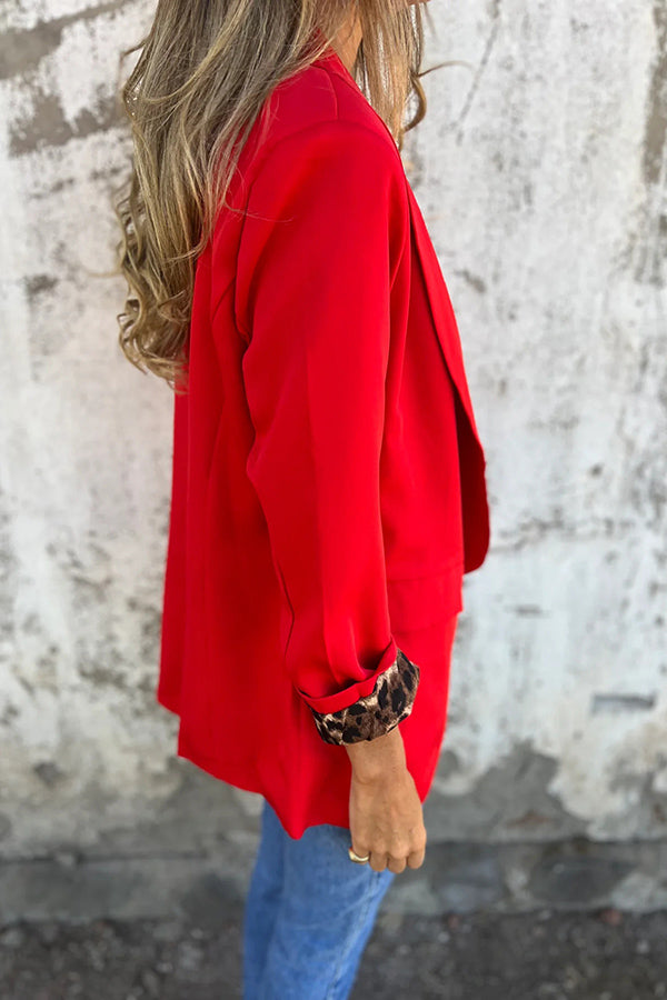 Fashion Leopard Print Lapel Long Sleeve Casual Blazer