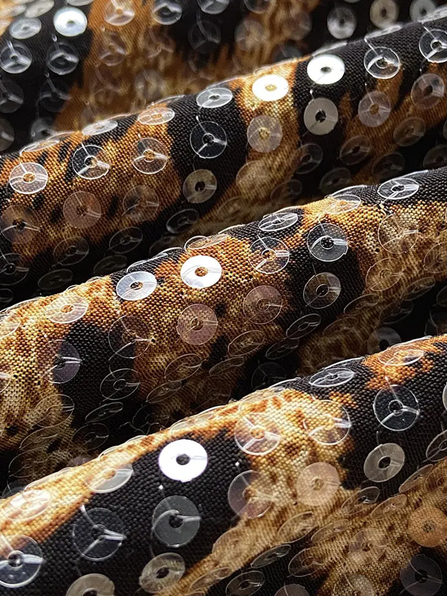 Fashion Leopard Print Sequin Long Sleeve Cropped Open Front Jacket