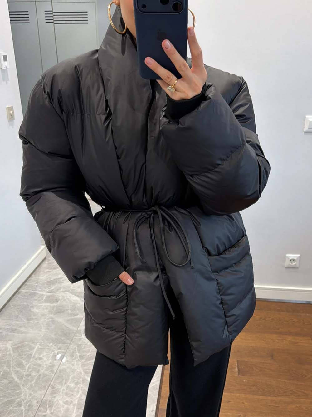 Stay stylish and warm with our Fashion Pocket Fold-Over Puffy Lace-Up Coat. This versatile outerwear combines functionality with modern design, perfect for any occasion. Daily wear, outdoor adventures, or layering in colder months. Practical storage space for your essentials while on the go.