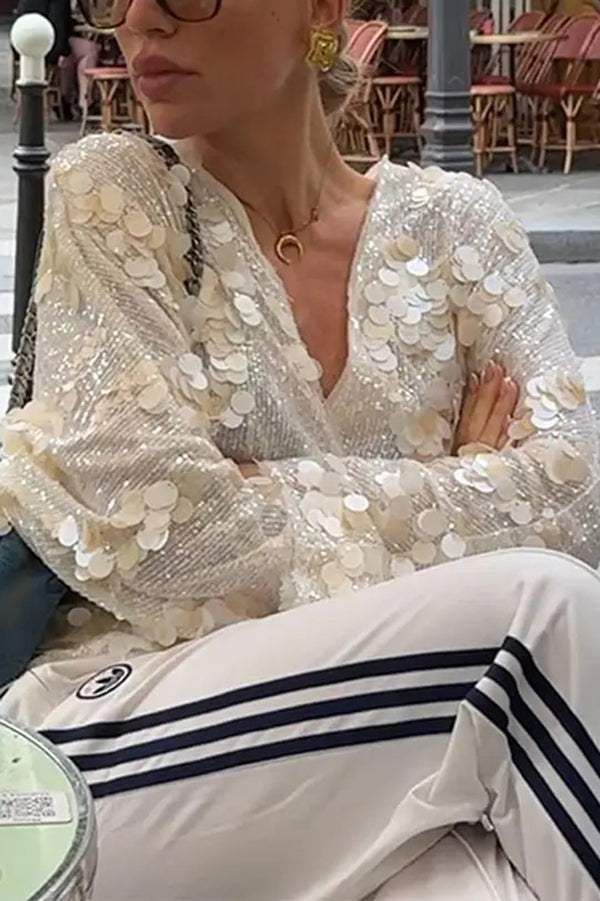 Fashion Sequined Casual Long-sleeved Tie Loose Coat