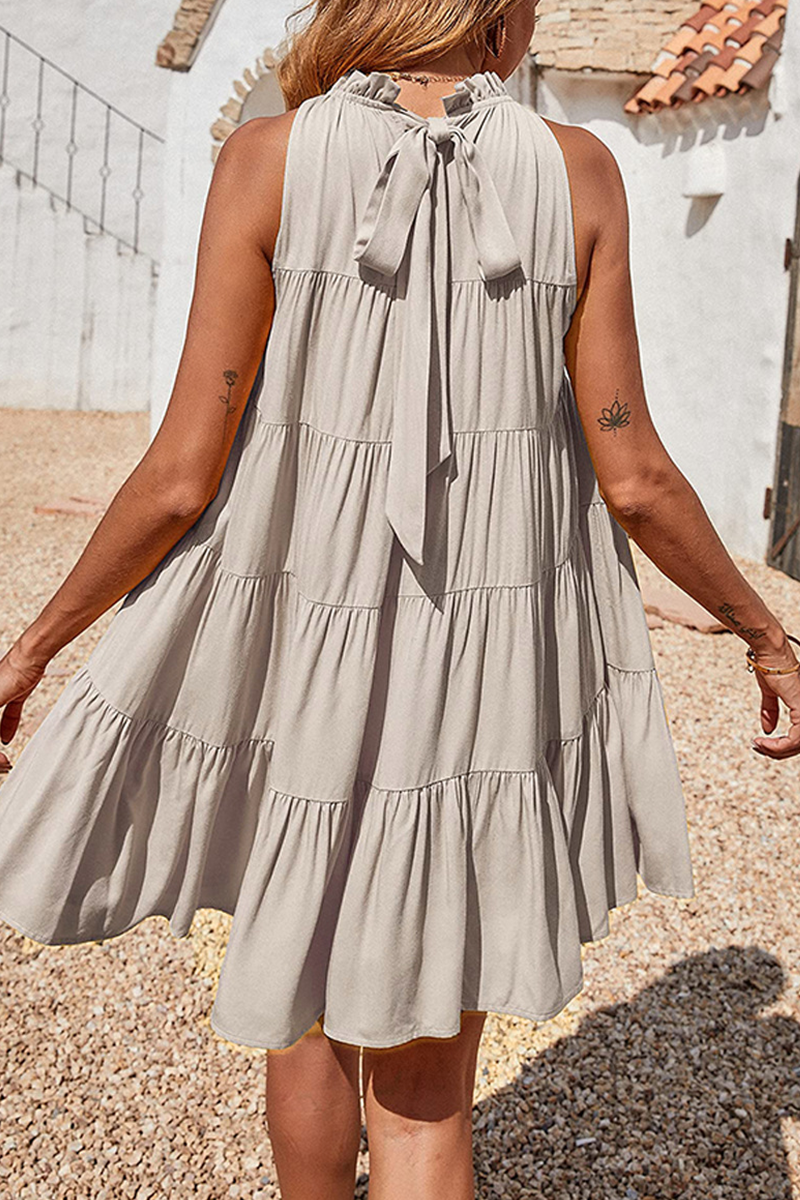 Fashion Solid Halter Cake Skirt Dresses(6 Colors)