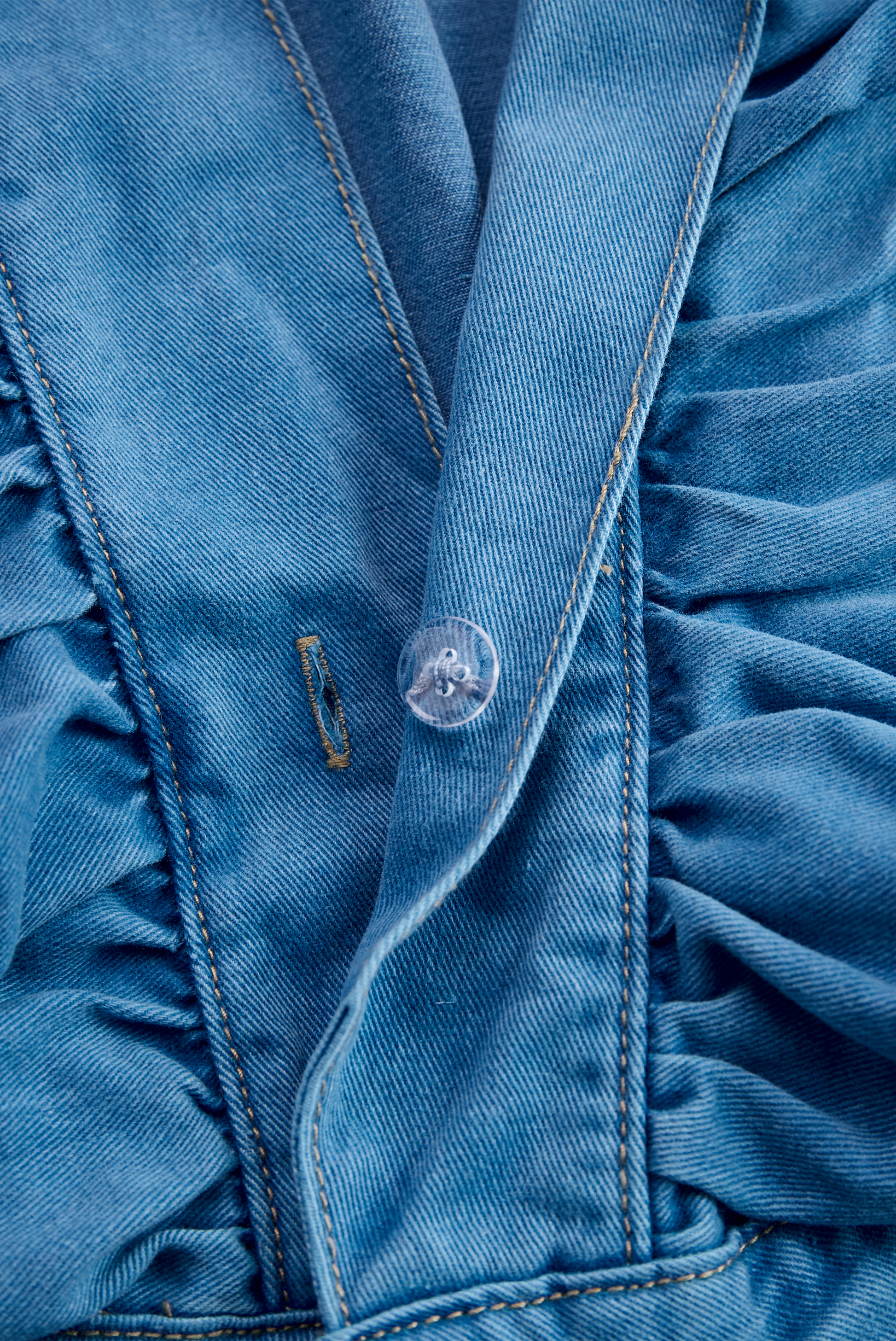 The Fashionable Ruffle Strap Denim Shorts Jumpsuit is a trendy and playful piece that effortlessly combines comfort and style. Designed with eye-catching ruffle straps, this jumpsuit adds a touch of femininity and flair to your summer wardrobe. The lightweight denim fabric ensures breathability while maintaining its shape, making it a perfect choice for warm-weather outings and casual gatherings.