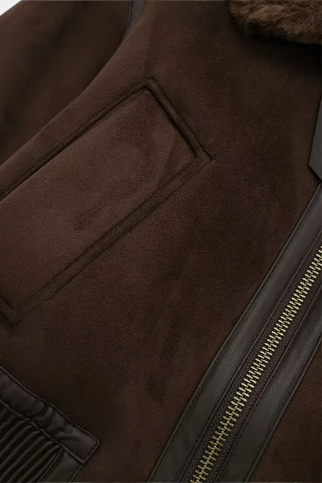 Faux Shearling Aviator Jacket | Cropped Fit | Turn-Down Collar