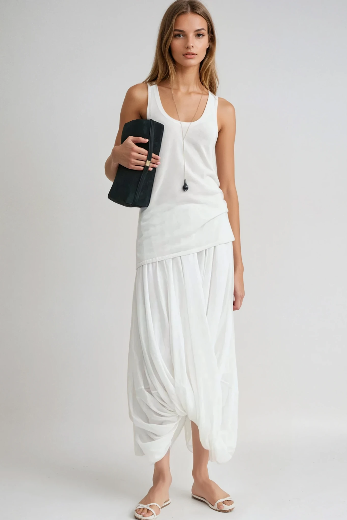 The Fearghas Draped Twist Maxi Skirt in White showcases sophisticated tailoring with its signature twisted drape detail that creates elegant movement and dimension. Crafted from premium fabric, this floor-length silhouette offers a refined aesthetic suitable for both elevated casual occasions and formal events. The architectural twist at the waist provides a flattering fit while the flowing maxi length delivers timeless versatility. A wardrobe essential that transitions seamlessly from day to evening wear.