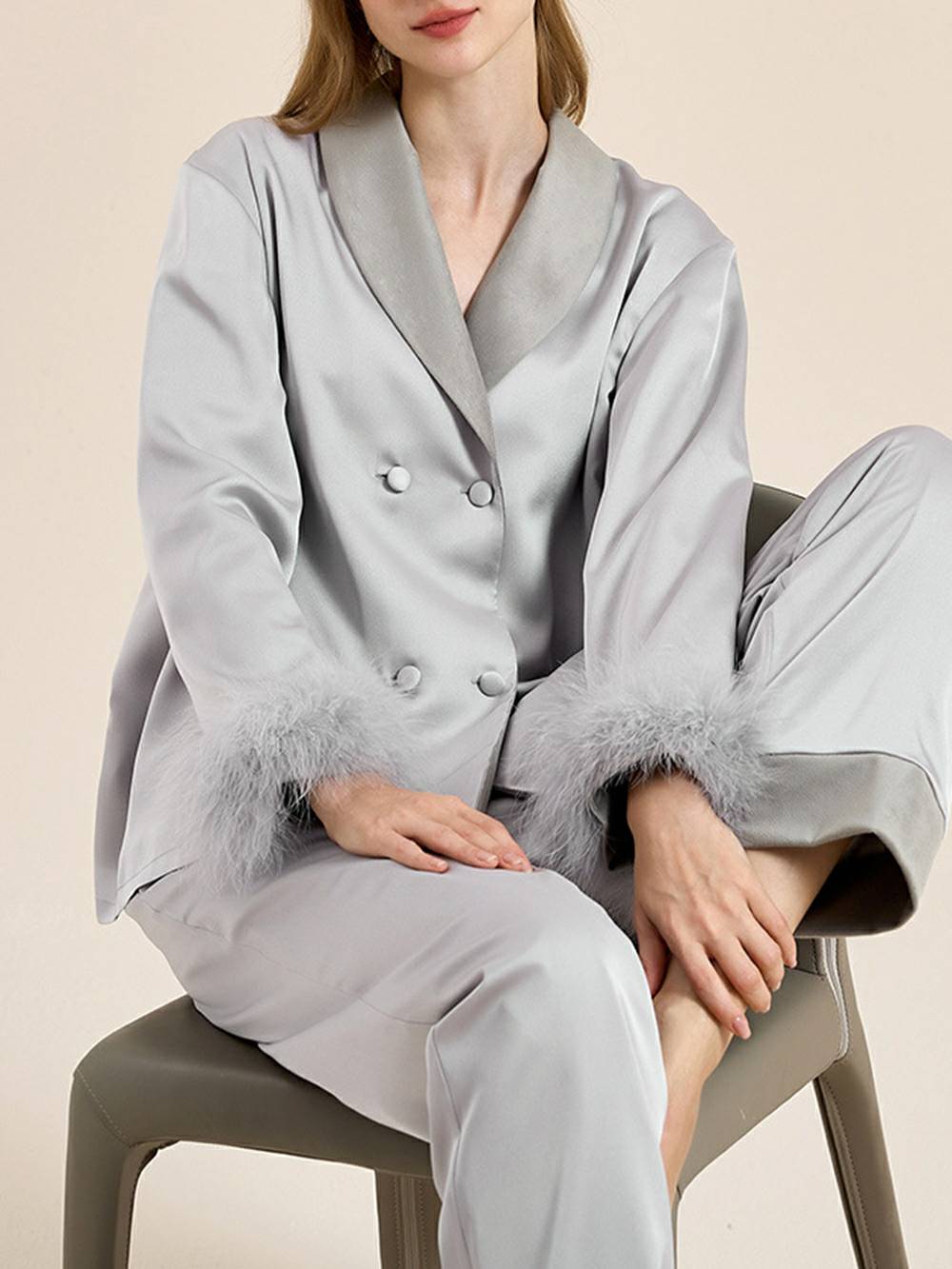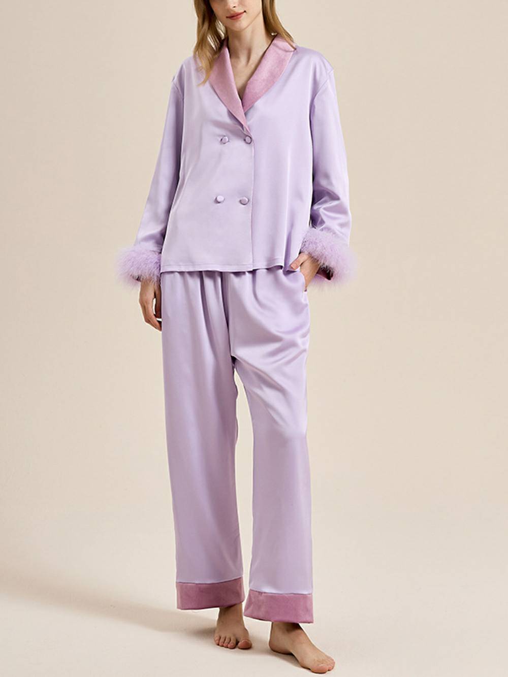 Feather Trim Red Pyjamas Set