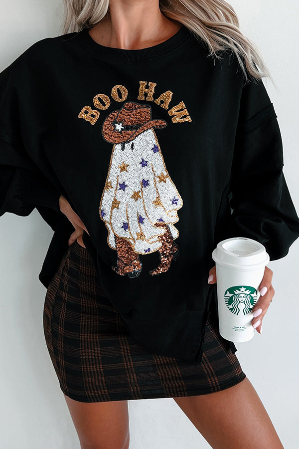 Halloween Ghost Sequin Print Casual Loose Sweatshirt
