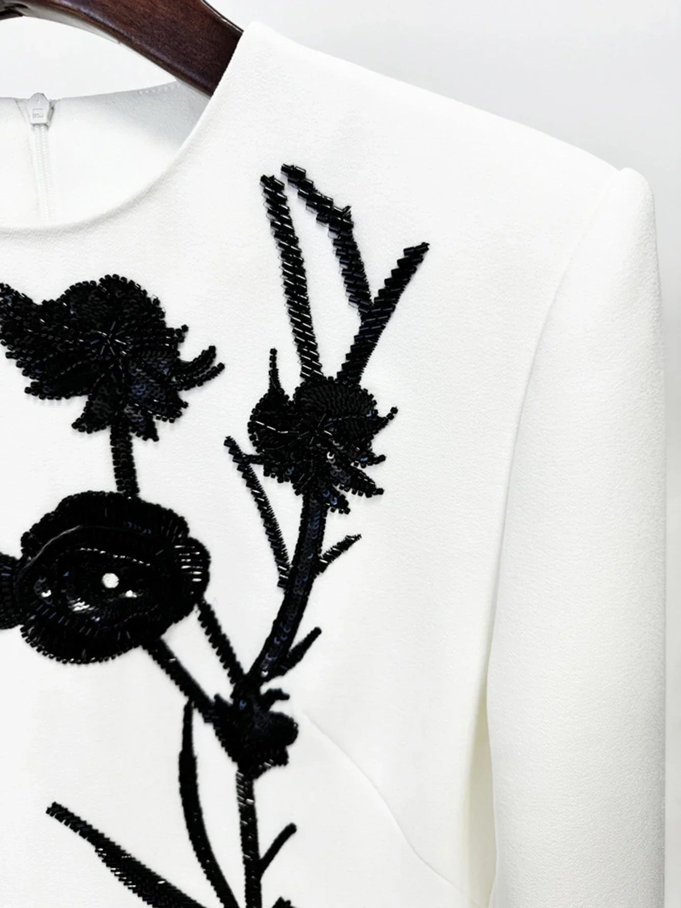 Introducing the Heidi Mini Dress - a high quality, sexy addition to your wardrobe. Crafted with O neck, long sleeves, and stunning 3D flower nail bead sequins, this mini dress is perfect for any celebrity party. Stand out in style with this heavy industry-inspired dress.