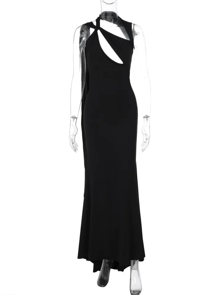 Hollow Out Sleeveless Black Maxi Dress