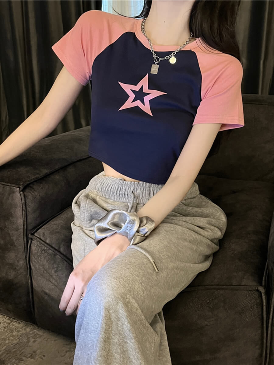 Hollow Star Print Crop T-Shirt