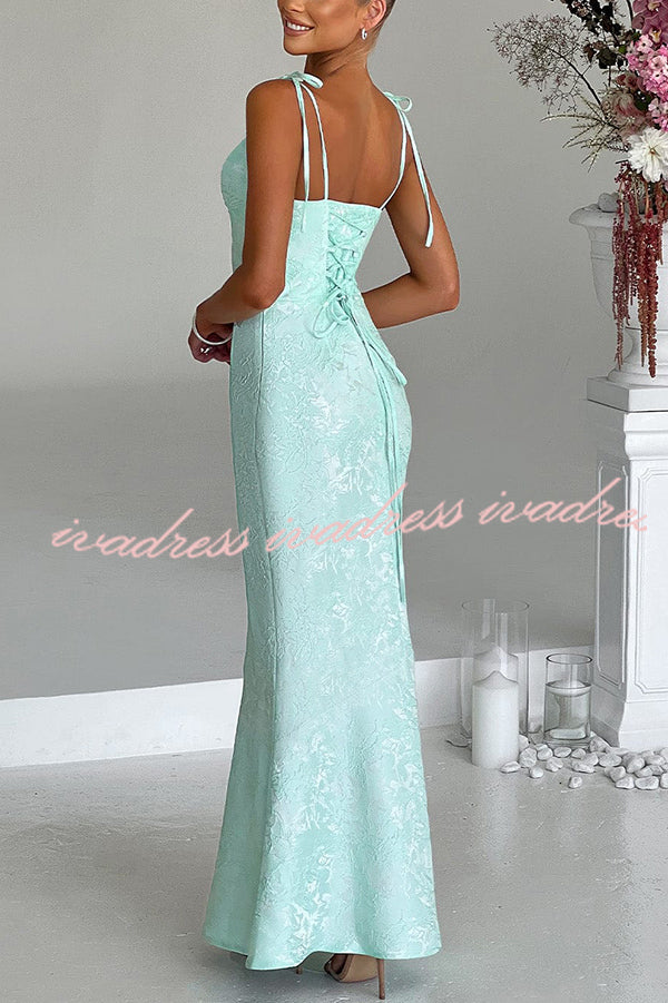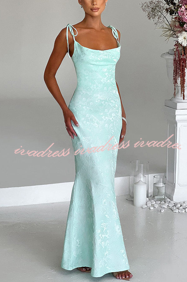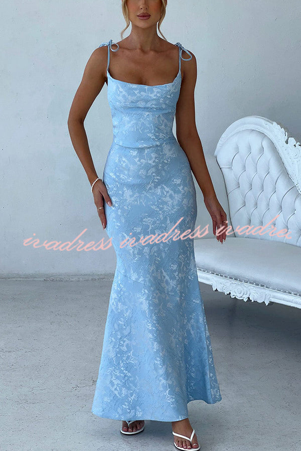 Jacquard Fabric Elegant Suspender Tie Slim Fishtail Maxi Dress