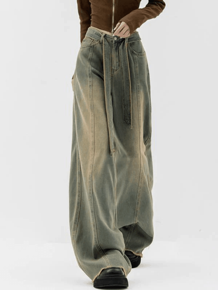 " Boyfriend jeans with tie straps and stitching from Amiemi is a fashion staple that never goes out of style. With its relaxed and comfortable cut. it suits all body shapes and goes perfectly with all clothing styles. Whether you're looking for a casual or more formal look. these jeans are the piece to have in your wardrobe. Our jeans are made from high-quality denim. for a timeless and durable look.