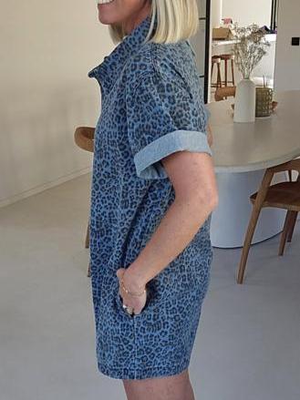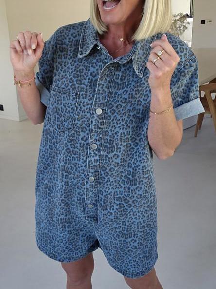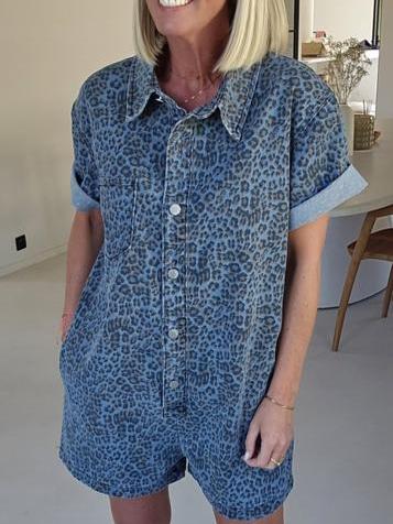 Meet your new off-duty favorite _ the Jini Jeans Playsuit in Blue Leo. Crafted from a breathable cotton-blend fabric, this laid-back one-piece features an eye-catching leopard print with an effortlessly loose fit that__ perfect for relaxed days or weekend getaways.