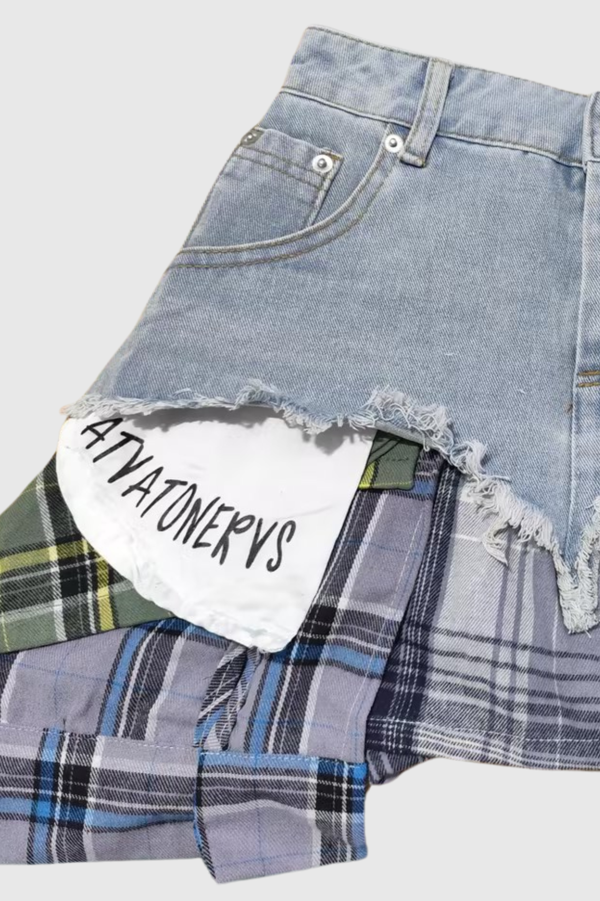 Introducing the Kenna Grid Deconstruct Patchwork Mini Skirt In Blue, a unique and stylish addition to your wardrobe. Made with high-quality materials, this mini skirt features a grid deconstruct patchwork design that is both eye-catching and fashion-forward. A must-have for any fashionista looking to make a statement.