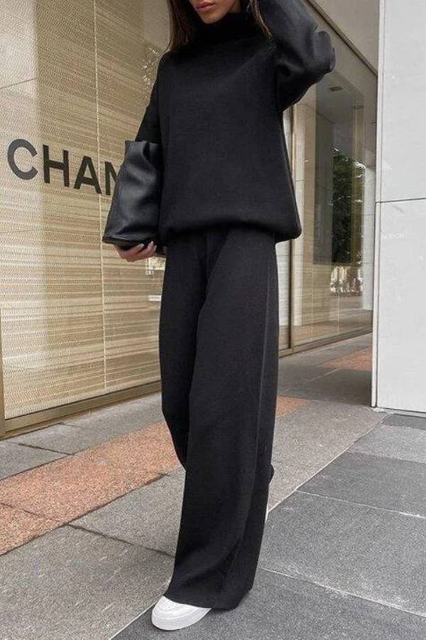 Knitted Solid Color Loose Casual Suit