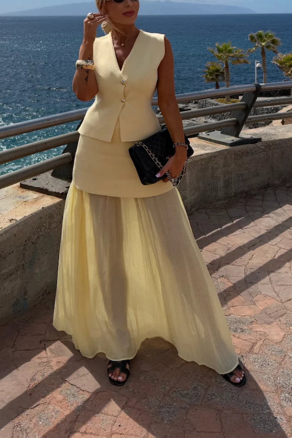 Size UNI VEST Â Total length (cm) 51 Bust circumference (cm) up to 96 SKIRT Â Total length (cm) 32/104 Waist circumference (cm) 66-80 Hip circumference (cm) until 98 The model will be perfect for sizes: XS-M