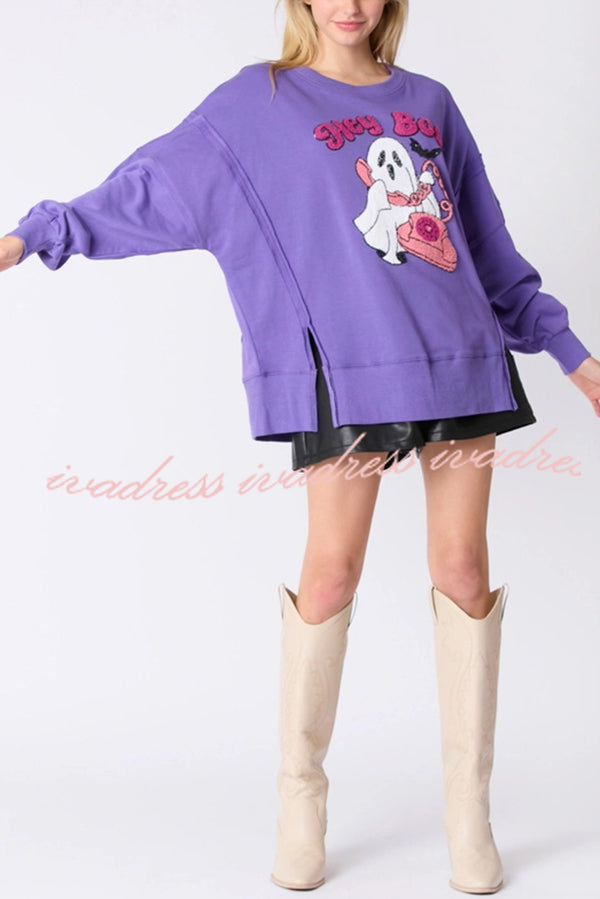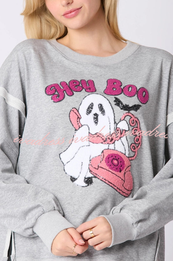 Halloween Cartoon Ghost Sequin Loose Casual Sweatshirt