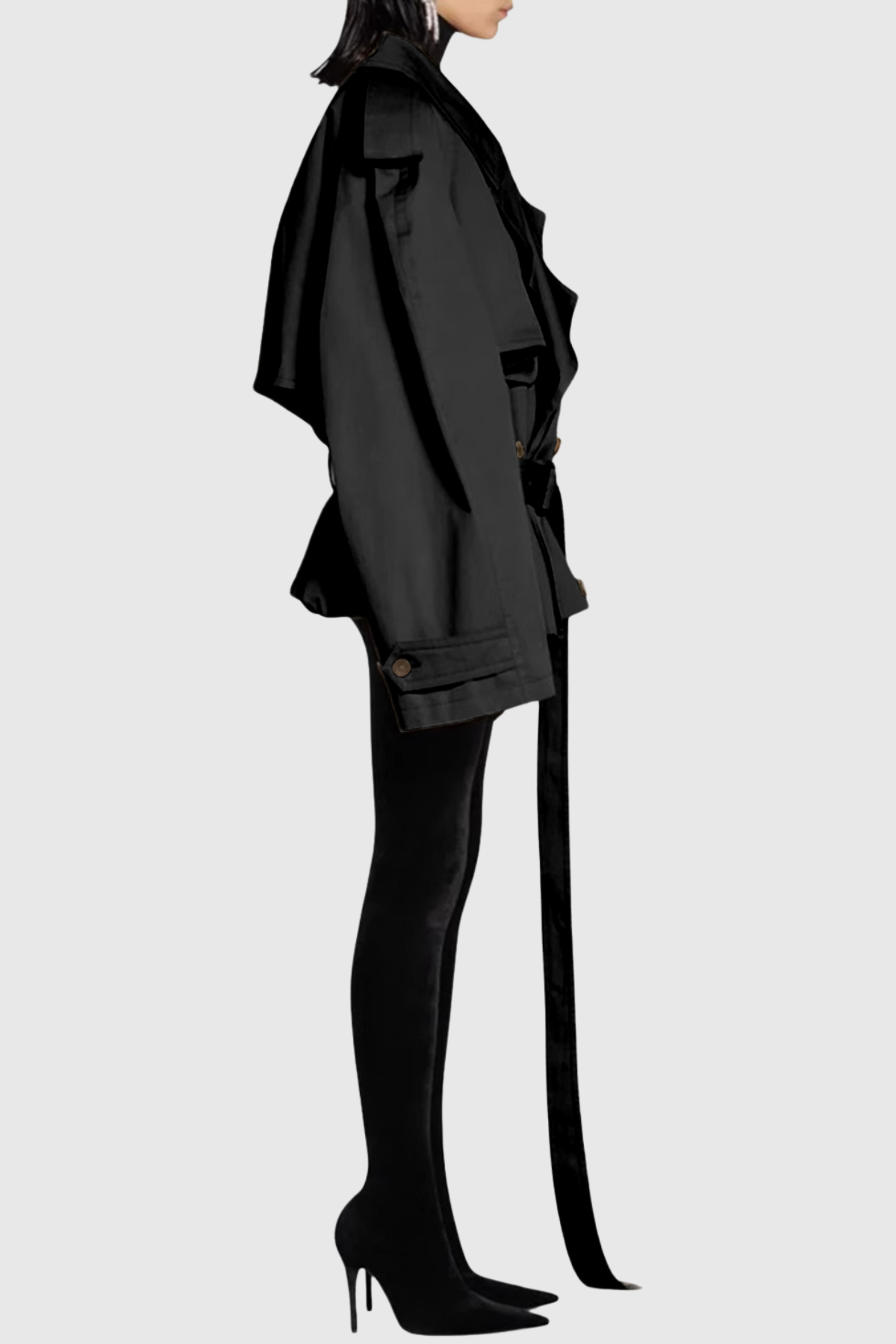 Lisane Double Breasted Short Trench Coat - Black