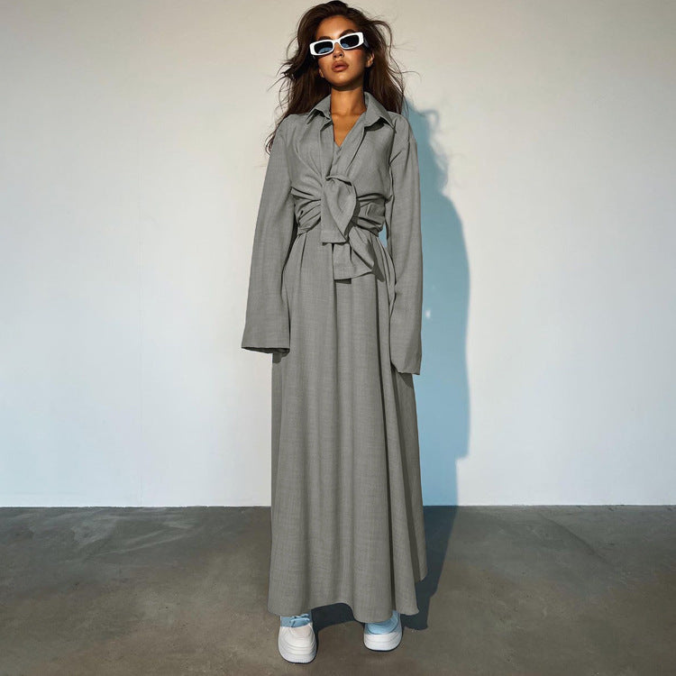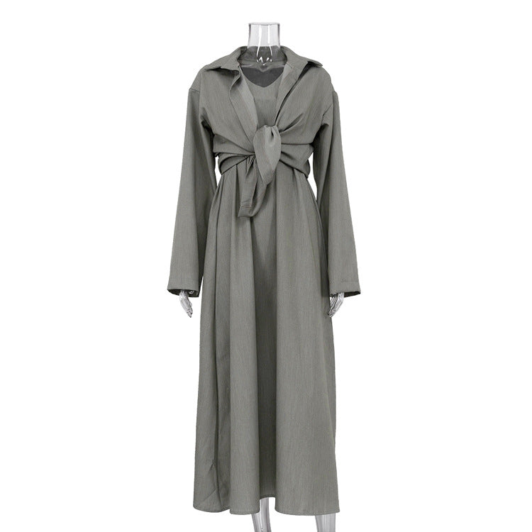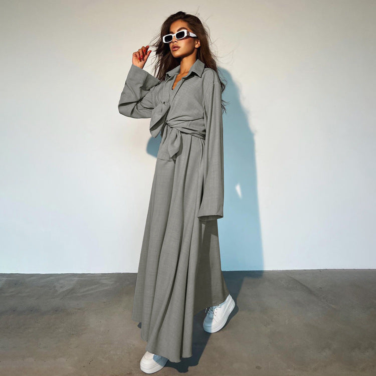 Loose Fitting Long Sleeves Shirt Vest Maxi Dress Two Piece Shirt Skirt Set