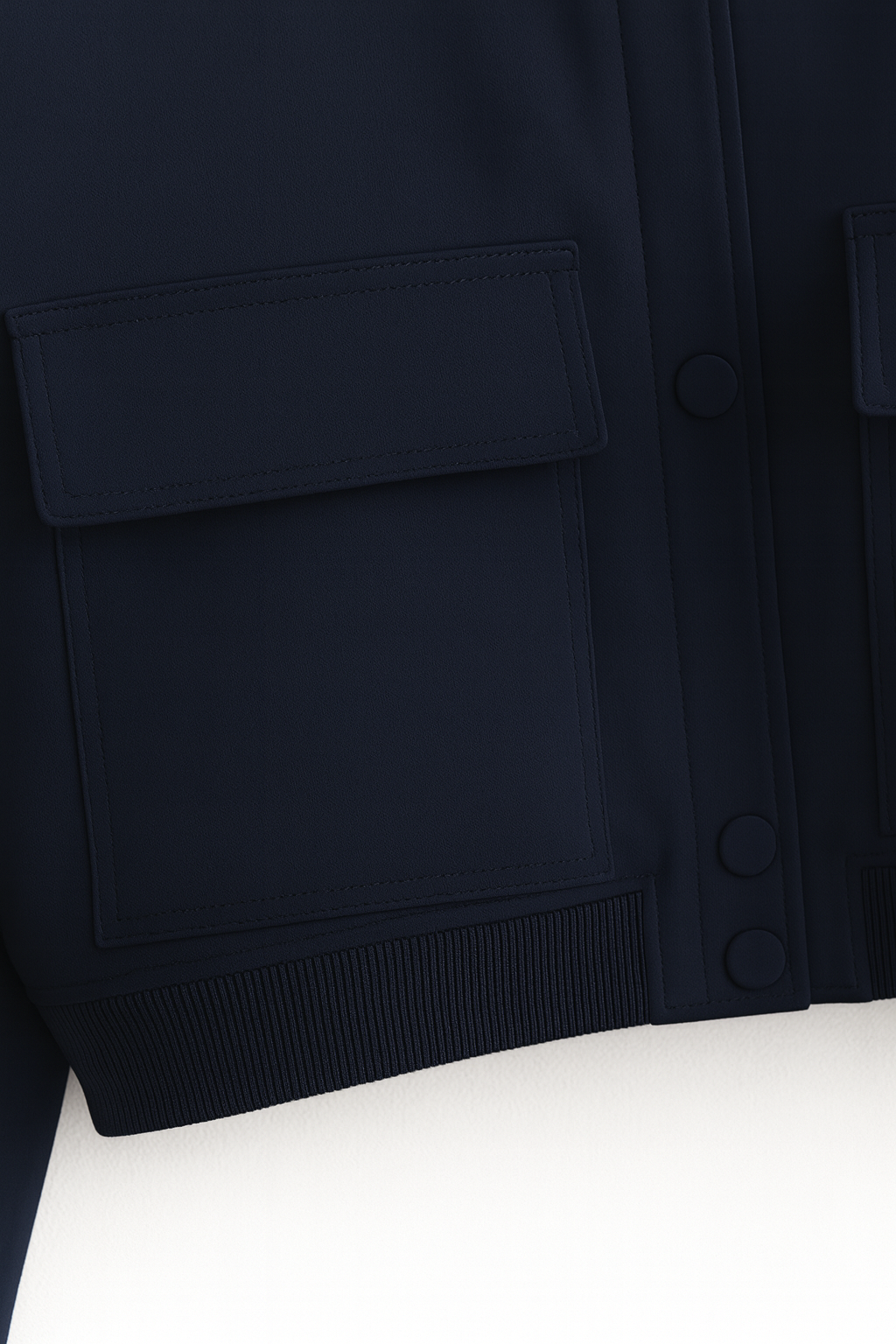 This bomber jacket presents a composed interpretation of a casual essential. Clean lines and a softly structured form create a balanced silhouette that feels modern and effortless.