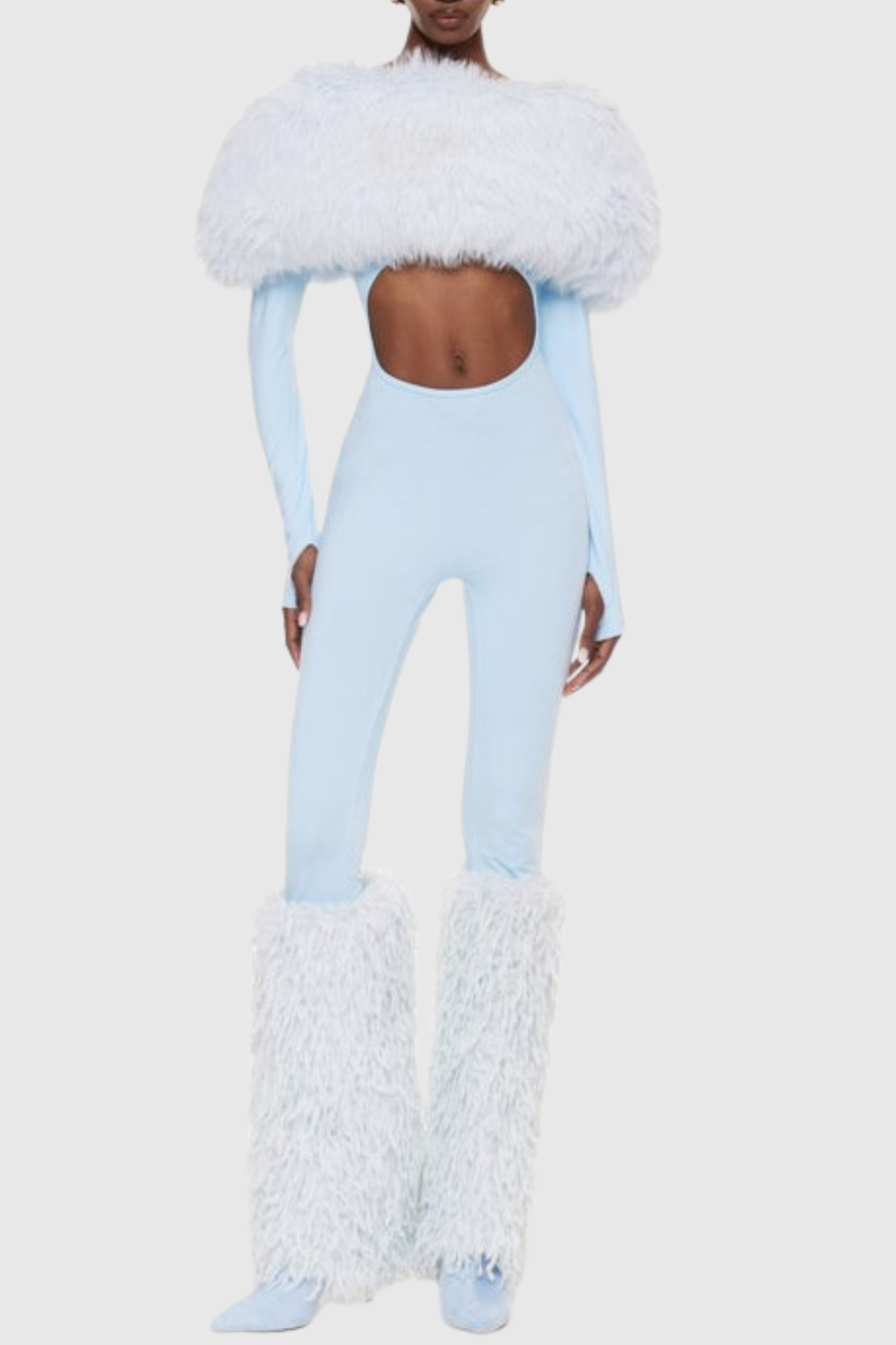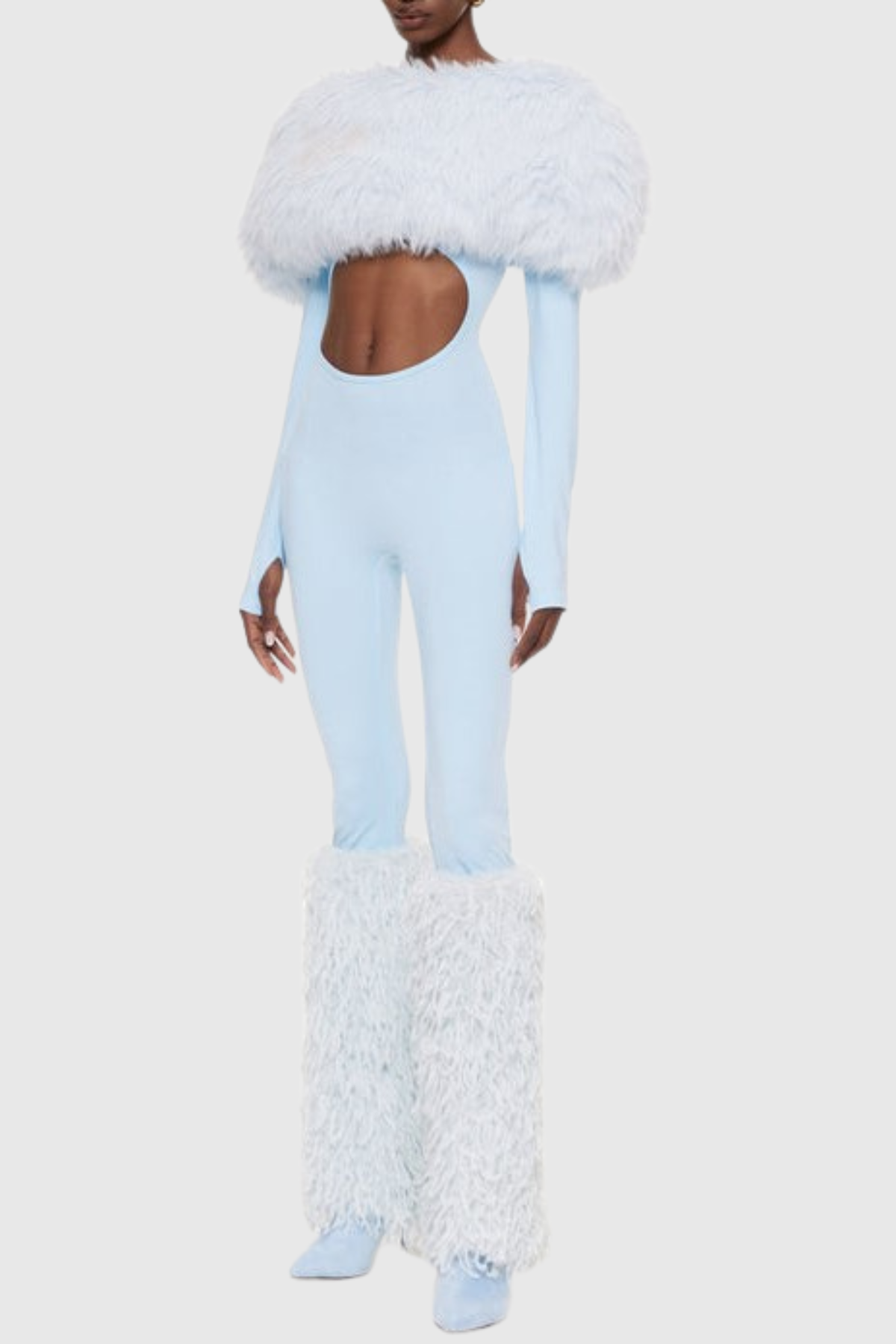 Marja Faux Fur Cutout Midi Jumpsuit - Blue