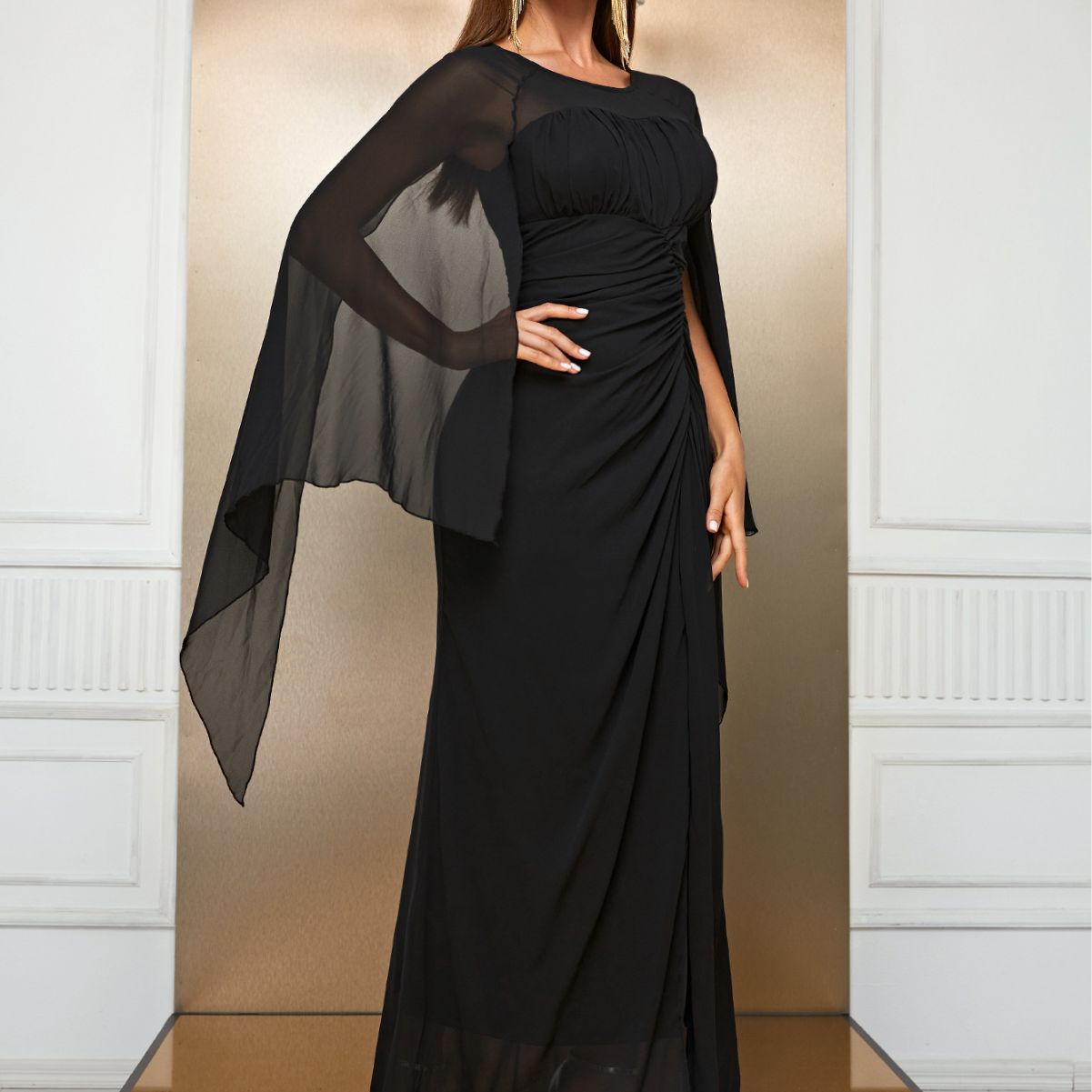 Maxi Dress Chiffon Long Sleeve Split Dress Irregular Asymmetric Sleeve Dress