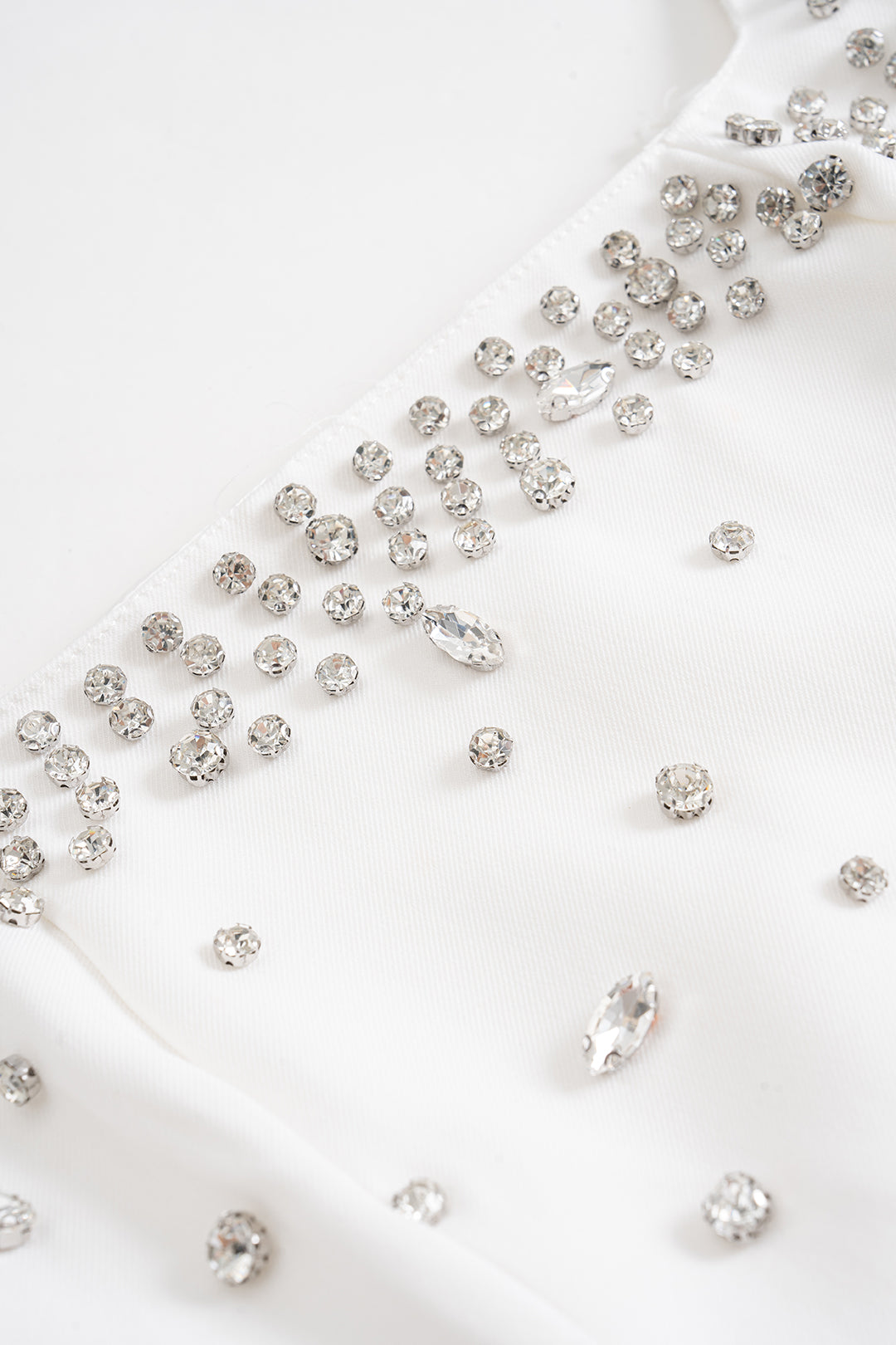 Square Neck Rhinestone Ruched Sleeveless Mini Dress