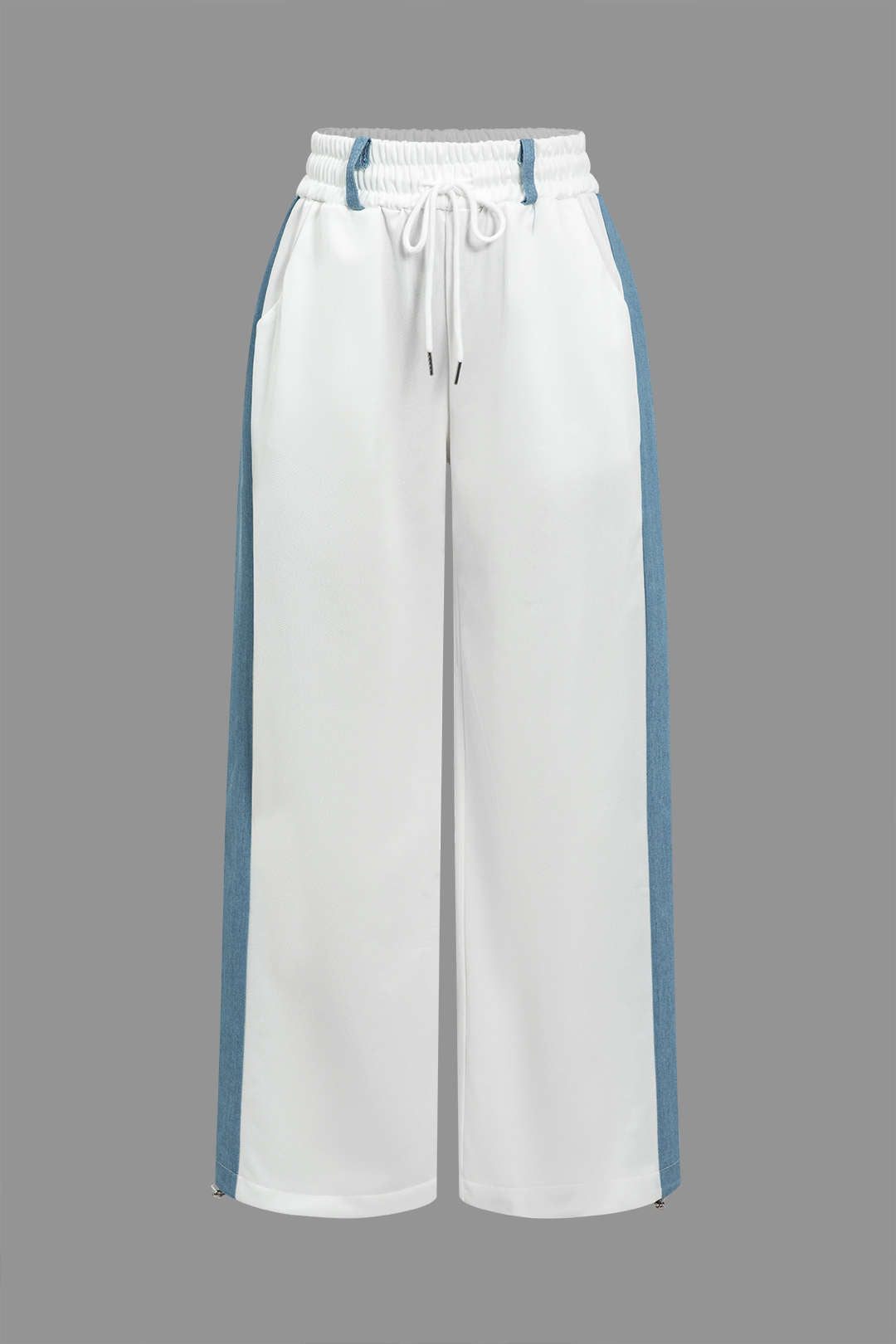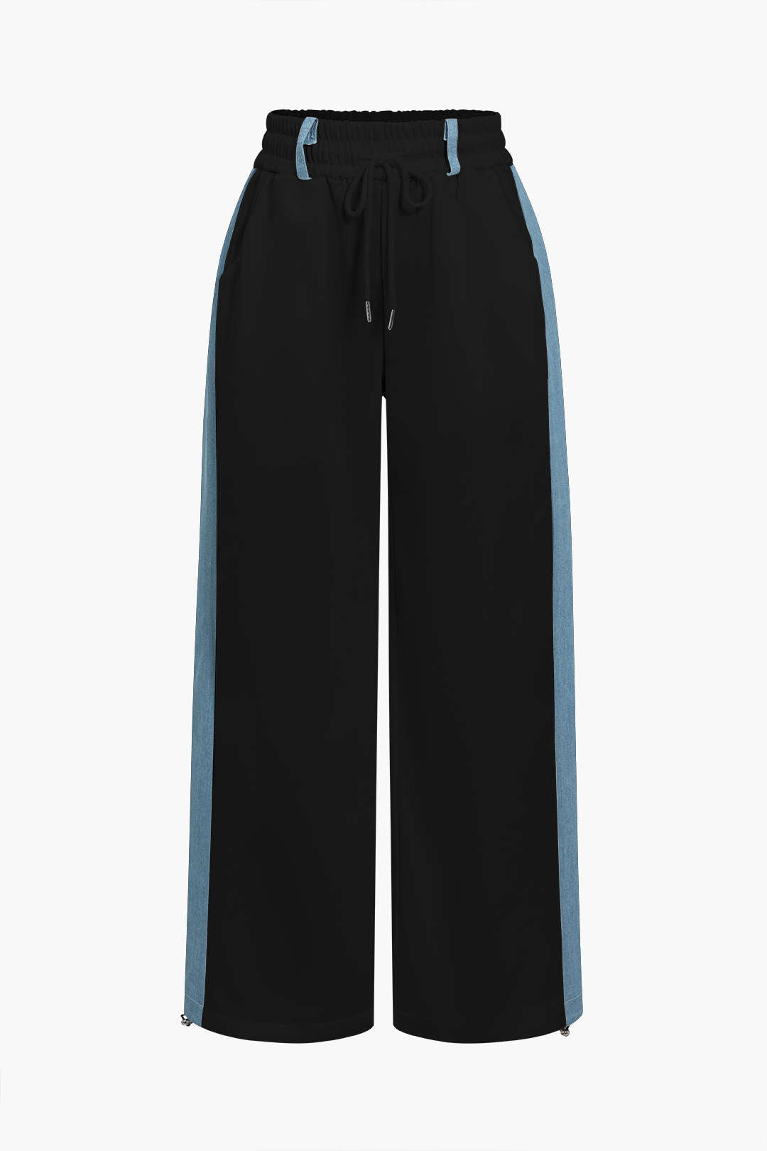 Color Block Denim Patchwork Hooded Zipper Jacket And Trousers Set