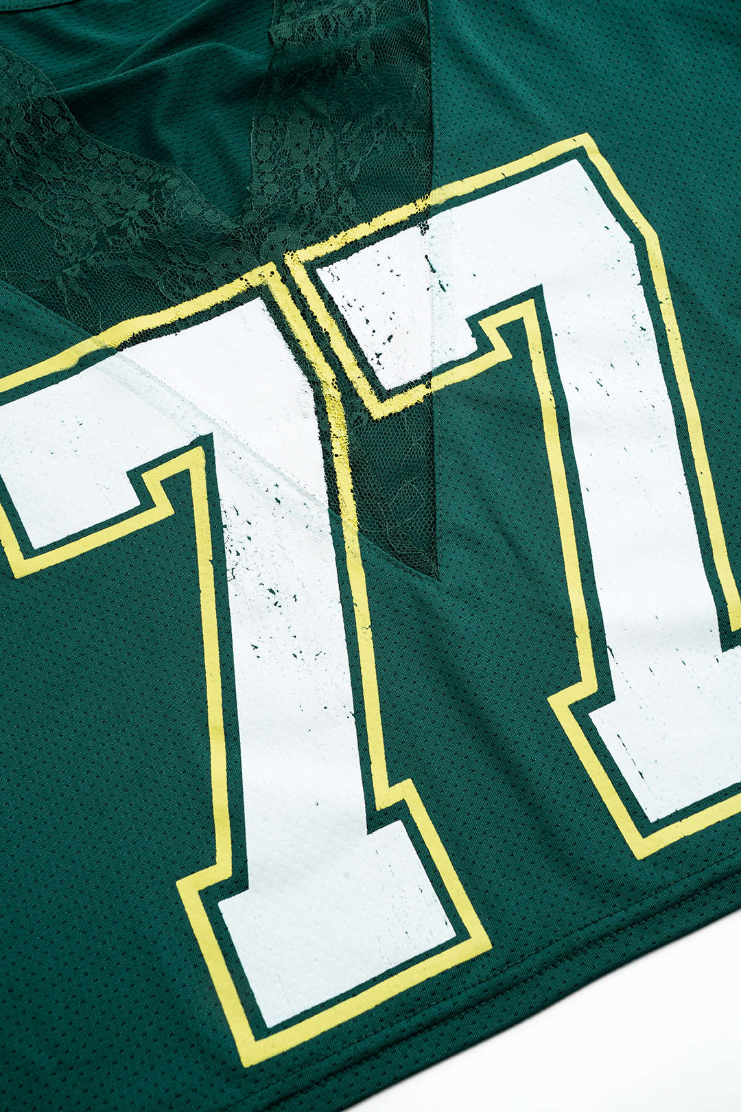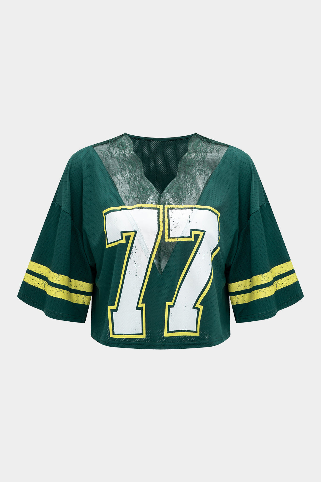 Stripe Letter Print Lace Trim Patchwork Short Sleeve T-Shirt